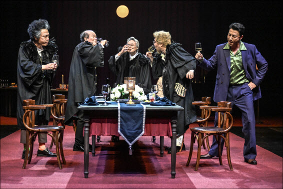 [이데일리 이윤정 기자] 긴 테이블과 피아노만 놓인 단출한 무대. 전직 판사·검사·변호사·사형집행관이 한자리에 모인 가운데 ‘모의재판 놀이’가 시작된다. 얼떨결에 피고가 된 섬유회