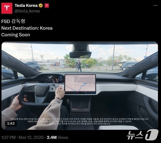 테슬라코리아는 12일 엑스X를 통해 완전자율주행FSD 감독형 서비스 도입을 밝혔다.X 갈무리테슬라가 '감독형…