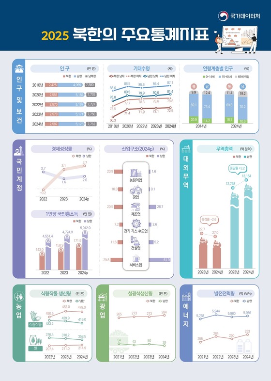 국가데이터처 제공지난해 북한 경제가 건설업과 광공업 생산 증가에 힘입어 2년 연속 성장세를 기록한 것으로 나타났다. 23일 국가데이터처가 발표한…