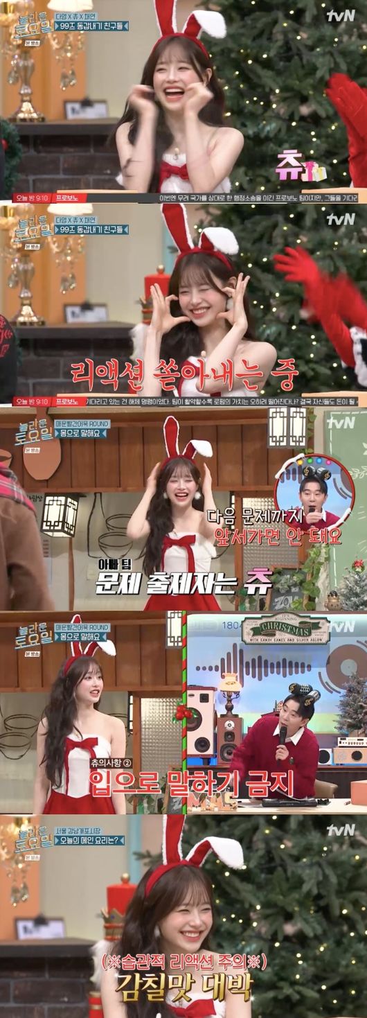 방송 시청 후 작성된 리뷰 기사입니다. [OSEN=임혜영 기자] 츄가 리액션 요정다운 면모를 뽐내 김동현의 의심을 샀다. 27일 방송된 tvN ‘놀라운 토요일’(이하 놀토)에는 가
