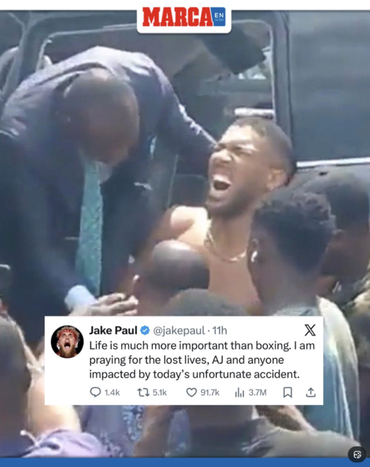 "휴가 중 끔찍한 교통사고" 복서 챔피언 조슈아, '뒷좌석 구사일생' 목숨은 구했다... 하지만 '절친' 동승자 2명 사망