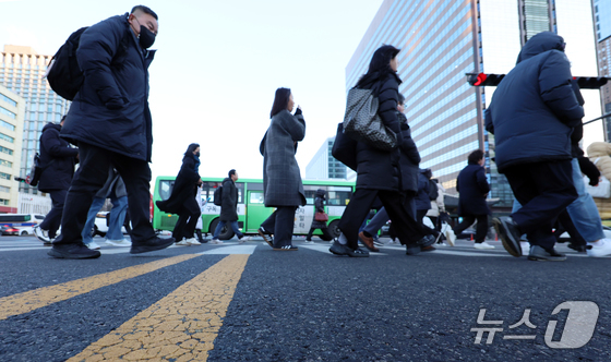 서울 광화문네거리에서 시민들이 출근하고 있다. 2025.2.3/뉴스1 News1 김명섭 기자올 상반기 15~54세 기혼여성 고용률이 64.3%로 통계…