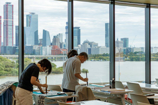[이데일리 이영민 기자] 서울 마포구가 도시와 한강 변의 균형발전을 위한 ‘마포강변8.2프로젝트’를 18일 발표했다. 한강변에 세워진 마포365구민센터에서 주민들이 서예 교육을 받