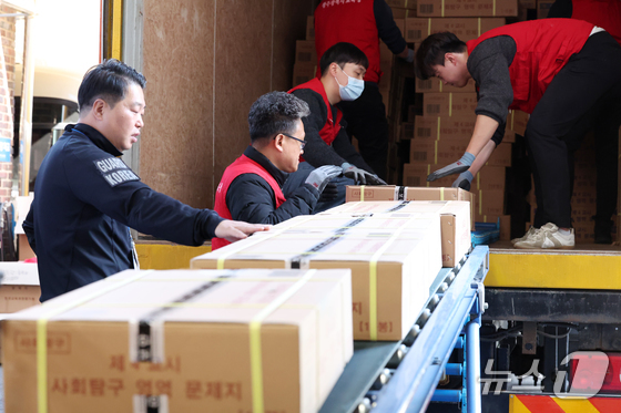 2026학년도 대학수학능력시험을 이틀 앞둔 11일 광주 서구 화정동 광주시교육청에 수능 문제지와 답안지가 도착해 관계자들이 이를 보관 장소로 옮기고 있다. /뉴스1 &c…