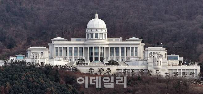 [이데일리 방보경 기자] 정치권의 통일교 금품수수 의혹을 수사 중인 경찰이 한학자 측근으로 알려진 통일교 관계자를 소환해 조사하고 있다. 경기 가평군 설악면에 위치한 통일교 천정궁