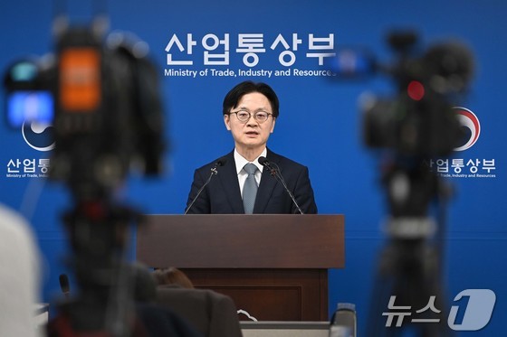 김정관 산업통상자원부 장관이 17일 오후 세종시 정부세종청사 산업부 기자실에서 '산업통상부 업무보고 사후 브리핑'을 하고 있다. 산업통상자원부 제공. 재판매 및…