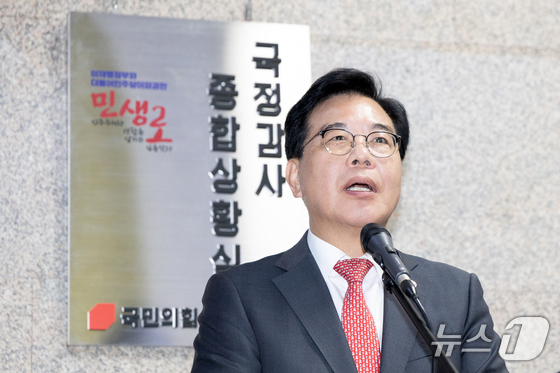 송언석 국민의힘 원내대표가 일 서울 여의도 국회에서 열린 '국정감사 종합상황실 현판 제막식'에서 인사말하고 있다. ../뉴스 News…