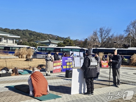 30일 서울 종로구 청와대 분수대 앞에서 기자회견 및 시위가 열리는 모습. 2025.12.30/뉴스1 ⓒ News1 유채연 기자"사회적 약자들이 존재를 드러내기 …