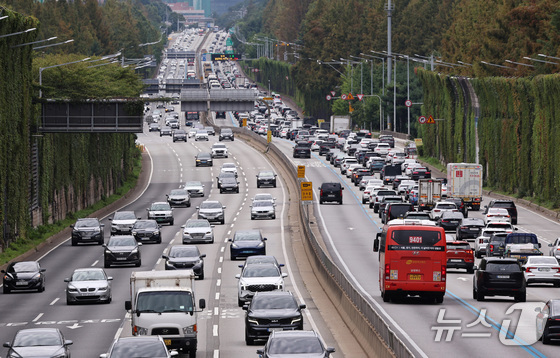 연휴 마지막 날이자 한글날인 일 오전 서울 서초구 잠원IC 인근 경부고속도로에서 차량들이 서행하고 있다. ../뉴스 News 구윤성 기자…
