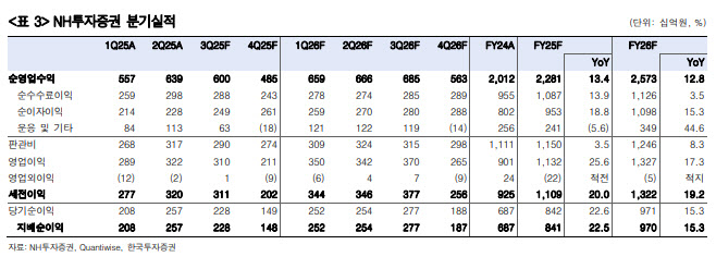 [이데일리 박순엽 기자] 한국투자증권은 15일 NH투자증권(005940)에 대해 여신 관련 이익 확대와 증시 호조를 고려하면 유상증자에도 2026년 자기자본이익률(ROE)은 전년