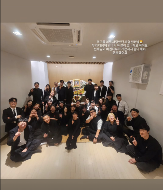 [OSEN=박소영 기자] 개그맨 정세협이 갑작스럽게 생을 마감한 가운데 동료 선후배 코미디언들이 영정 앞에서 우정사진을 남겼다. 조수연은 9일 자신의 SNS에 “개그를 너무 사랑했
