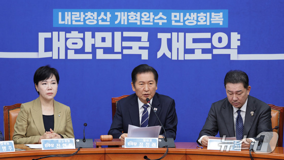 정청래 더불어민주당 대표가 일 서울 여의도 국회에서 열린 최고위원회의에서 발언하고 있다. ../뉴스 News 신웅수 기자더불어민…