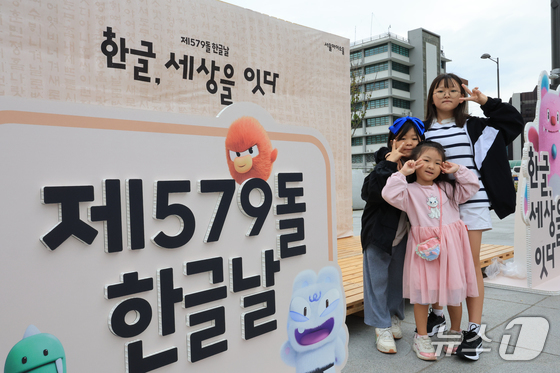 "세종대왕님 감사합니다"…한글날 아이들로 광화문 광장 '와글와글'