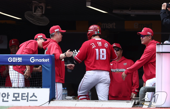 일 오후 인천 SSG 랜더스필드에서 열린 프로야구 신한 SOL뱅크 KBO 준플레이오프 차전 삼성 라이온즈와 SSG 랜더스의 경기, SSG 고명준이 회말 …
