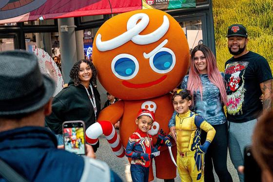 뉴욕 코믹콘 행사장을 찾은 관람객이 쿠키런 캐릭터와 기념 사진을 찍고 있다.데브시스터즈 제공. 재판매 및 DB금지../뉴스데브시…